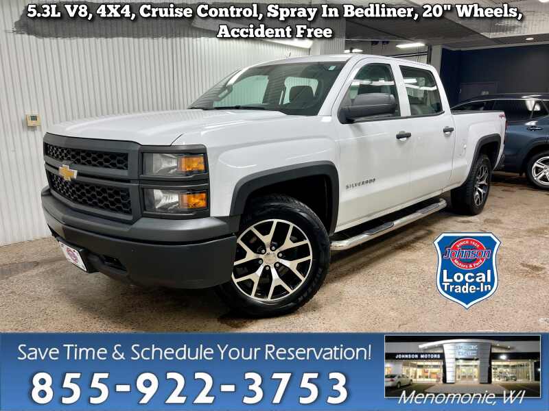 Description: 5.3L V8, 4X4, Cruise Control, Spray-In Bedliner, 20 Wheels, Accident Free, Local Trade In.Price does not include sales tax, title, registration, or $299.95 service fee. NACTOY 2014 North American Truck of the Year. Delivers 22 Highway MPG and 16 City MPG! This Chevrolet Silverado 1500 boasts a 5.3L V8 engine powering this Automatic transmission. TR...Features:- - TIRES P265/70R17 ALL-TERRAIN BLACKWALL