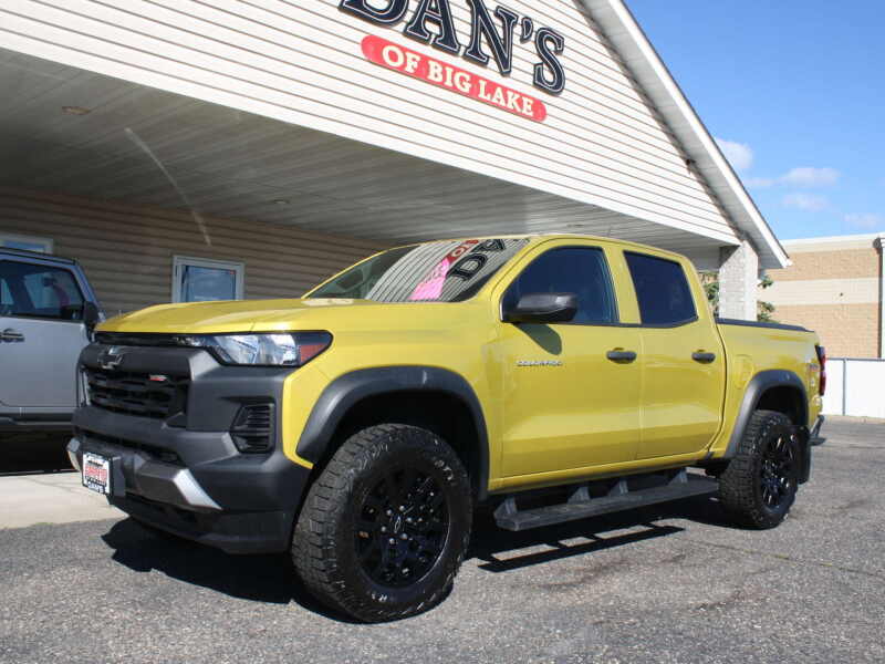 Description: For sale we have a 2023 Chevy Colorado crew cab Trail Boss. This is a like new 1 owner with only 14,000 miles! Super sharp Nitro Yellow Metallic. Great features such as 2.7L engine, 4WD, Trail Boss pkg, leather interior, big touch screen radio w/ mp3/usb/aux, bluetooth, navigation, back-up camera, access cover, step bars, alloy wheels on all ter...Features:- - 11.3 Infotainment Display Size