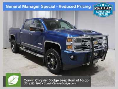 Description: MARCHING INTO SPRING AT CORWIN CHRYSLER DODGE JEEP RAM OF FARGO!! WE HAVE SAVINGS ON ALL OF OUR PRE-OWNED VEHICLES AVAILABLE!! WE HAVE ONE OF THE LARGEST SELECTIONS OF INVENTORIES IN OUR AREA AT ONE SINGLE LOCATION!! Deep Ocean Blue Metallic 2017 Chevrolet Silverado 2500HD High Country 4D Crew Cab 4WD Duramax 6.6L V8 Turbodiesel Clean CARFAX.This C...Features:- - Navigation System