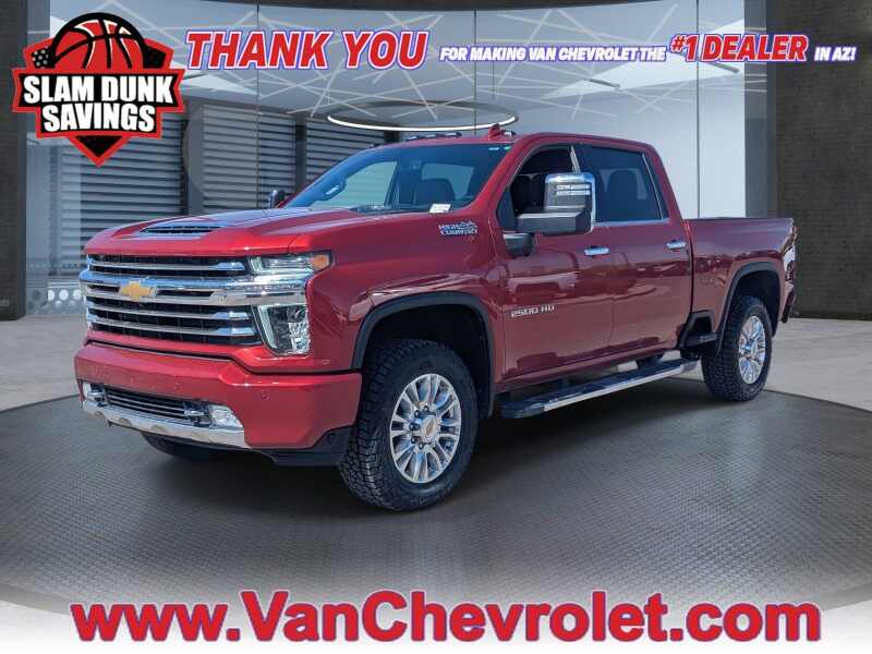 Description: Recent Arrival! CARFAX One-Owner. Clean CARFAX. Cherry Red Tintcoat 2022 Chevrolet Silverado 2500HD High Country 4WD 10-Speed Automatic Duramax 6.6L V8 Turbodiesel 10-Speed Automatic, 4WD, Jet Black/Umber Leather.Inventory reduction sales this weekend only !! 100's of vehicles must go, sale ends Sunday Night NO Exceptions ... Odometer is 15360 mile...0- Sale Price: $60,747