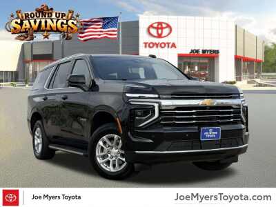 Description: **ONE OWNER**, **CLEAN CARFAX!**, **BLUE TOOTH**, **BACK UP CAMERA**, **LEATHER INTERIOR**, **ALLOY WHEELS**, 4WD, Black Leather. 2025 Chevrolet Tahoe LT Black 4WD 10-Speed Automatic with Overdrive CARFAX One-Owner. 15/19 City/Highway MPG EcoTec3 5.3L V8 JOE MYERS TOYOTA NAMED A CARFAX TOP-RATED DEALER SEVEN YEARS IN A ROW!!! COME EXPERIENCE JOE MY...Features:- - Navigation system Google built-in compatibility (select service plan r...