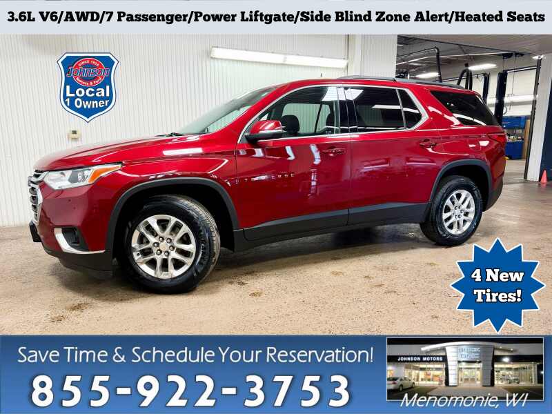 Description: 3.6L V6, AWD, 7 Passenger, Power Liftgate, Side Blind Zone Alert, Heated Seats.Local 1-owner Trade!Price does not include sales tax, title, registration, or $299.95 service fee. IIHS Top Safety Pick with optional front crash prevention and specific headlights. Boasts 25 Highway MPG and 17 City MPG! This Chevrolet Traverse boasts a 3.6L V6 engine p...Features:- - LT CLOTH PREFERRED EQUIPMENT GROUP Includes Standard Equipment