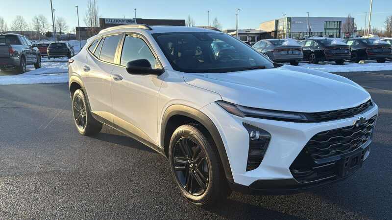 Description: This CarBravo Certified 2025 Chevrolet Trax 2RS FWD delivers sporty styling, modern technology, and impressive value in a sleek compact SUV. Finished in Mosaic Black Metallic with a distinctive Jet Black interior featuring bold Red accents, the 2RS trim brings an athletic presence with 19-inch black machined wheels, high-gloss black mirror caps, LE...Features:- - Driver Confidence Package