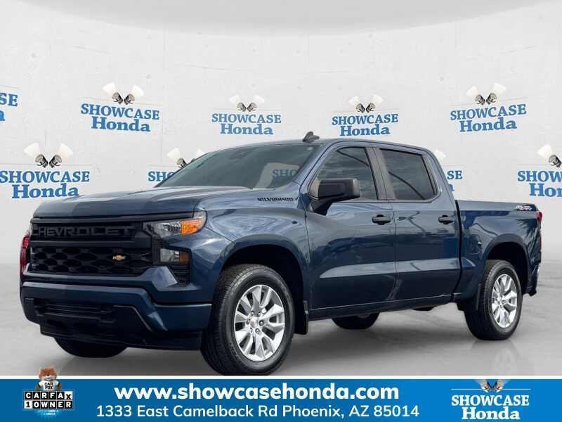 Description: SAVE BIG AT SHOWCASE HONDA'S MARCH MADNESS SALES EVENT ALL MONTH LONG!! 8-Speed Automatic, 4WD, Black Cloth. Priced below KBB Fair Purchase Price! Odometer is 1913 miles below market average! 4D Crew Cab Custom 8-Speed Automatic 4WD 2.7L Turbo Northsky Blue Metallic 2022 Chevrolet Silverado 1500 Custom Love It Or Leave It - 3 days/300 miles Full Ex...Features:- - Custom Convenience Package