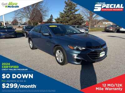 Description: Jet Black Cloth. 28/36 City/Highway MPG Priced below KBB Fair Purchase Price! CARFAX One-Owner. Clean CARFAX.Certification Program Details McGrath Certified Benefits * Free Vehicle History Report * 106 Point Full Vehicle Condition Inspection * Like it or Exchange it! Three Day Policy 2024 Chevrolet Malibu LT 1LT 1.5L DOHC FWDWe're in the customer s...Features:- - Preferred Equipment Group 1LT