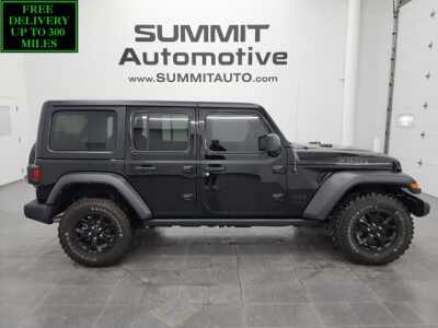 Description: WATCH A 4K WALKAROUND VIDEO OF THIS JEEP!1 OWNER! CLEAN TITLE HISTORY! CLEAN CARFAX!* 2.0 Liter DOHC I4 Turbocharged Engine, 270 Horsepower* Full Four Door Crew Cab with Soft Top* Color Matching Fenders* JL Body Style* Unlimited Sahara Package* 8 Speed Automatic Transmission* Automatic Transmission Center Console Shifter* 4x4 Floor Shifter Four Whe...Features:- - SIRIUSXM SATELLITE RADIO