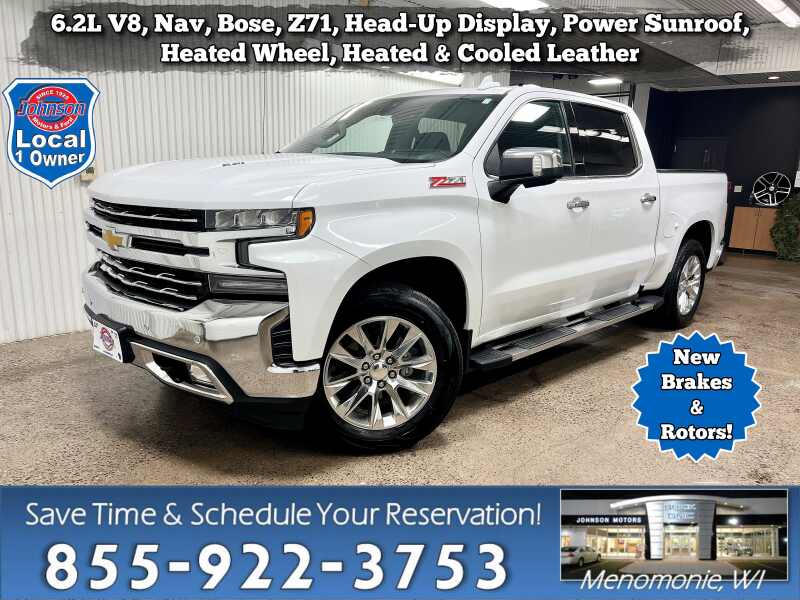 Description: 6.2L V8, Navigation, Z71 Offroad, Bose Premium Audio, Lane Keep Assist, Power Sunroof, Head-Up Display, Heated Steering Wheel, Heated & Cooled Leather.Price does not include sales tax, title, registration, or $299.95 service fee. Boasts 18 Highway MPG and 14 City MPG! This Chevrolet Silverado 1500 LTD boasts a 6.2L V8 engine powering this Automatic...Features:- - LPO ALL-WEATHER FLOOR LINERS 1ST AND 2ND ROWS (includes Z71 logo on...