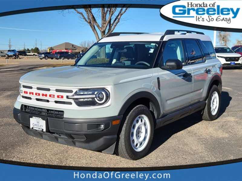 Description: Its so easy at Honda of Greeley!2023 Ford Bronco Sport Heritage Cactus Gray Heritage 4WD 1.5L EcoBoost 8-Speed Automatic3.80 Axle Ratio, 4-Wheel Disc Brakes, 6 Speakers, ABS brakes, Air Conditioning, Alloy wheels, AM/FM radio SiriusXM, AM/FM Stereo, Auto High-beam Headlights, Automatic temperature control, Brake assist, Cargo Management System, Com...Features:- - ENGINE 1.5L ECOBOOST -inc auto start-stop technology (STD)