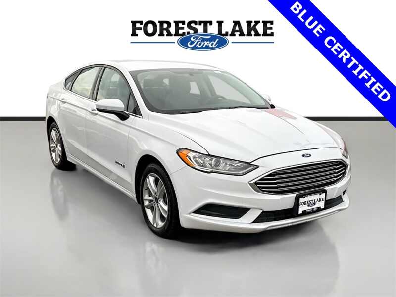 Description: Certified. 2018 Ford Fusion Hybrid S FWD E-CVT Automatic I4 Hybrid Oxford WhiteThis vehicle comes with a wide range of features including, I4 Hybrid, 9 Speakers, Automatic temperature control, Cloth Front Bucket Seats, Exterior Parking Camera Rear, Fully automatic headlights, Panic alarm, Radio AM/FM Stereo w/MP3/Single-CD Player, Security system, ...Features:- - Equipment Group 500A