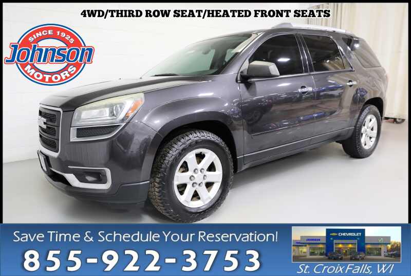 Description: 2016 GMC Acadia SLEJohnson Motors of St. Croix Falls --- Celebrating 100 Years in BusinessLooking for a spacious, versatile, and comfortable SUV that's ready for family life, road trips, and daily driving? This Used 2016 GMC Acadia SLE delivers practical performance, flexible seating, and modern convenience --- all backed by the trusted service and...Features:- - EBONY SEAT TRIM PREMIUM CLOTH
