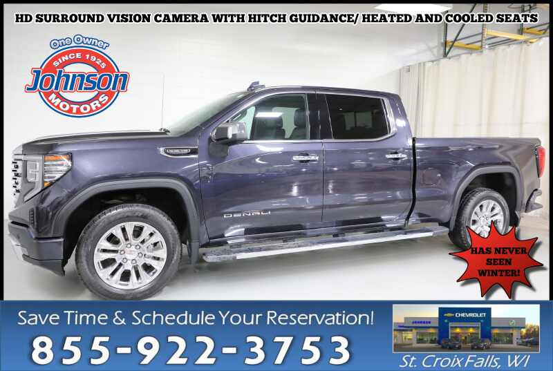Description: 2022 GMC Sierra 1500 Denali Crew Cab 4WDPremium Strength. Advanced Technology. Distinctive Denali Luxury.The 2022 GMC Sierra 1500 Denali Crew Cab delivers the perfect balance of refined luxury and full-size truck capability. Available now at Johnson Motors of St. Croix Falls, this well-equipped Sierra Denali offers premium materials, advanced safet...Features:- - NOT EQUIPPED WITH STEERING COLUMN LOCK SEE DEALER FOR DETAILS (Certa...