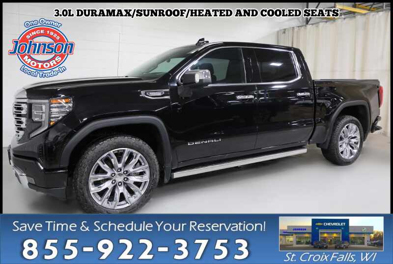 Description: Certified Pre-owned 2023 GMC Sierra 1500 DenaliPremium Capability. Refined Comfort. Confident Performance.The 2023 GMC Sierra 1500 Denali delivers the luxury, strength, and technology you expect from GMC's flagship full-size pickup. Available now at Johnson Motors of St. Croix Falls, this Denali blends upscale design with robust capability, making ...Features:- - ENGINE DURAMAX 3.0L TURBO-DIESEL I6 (305 hp 227 kW 3750 rpm 495 lb...