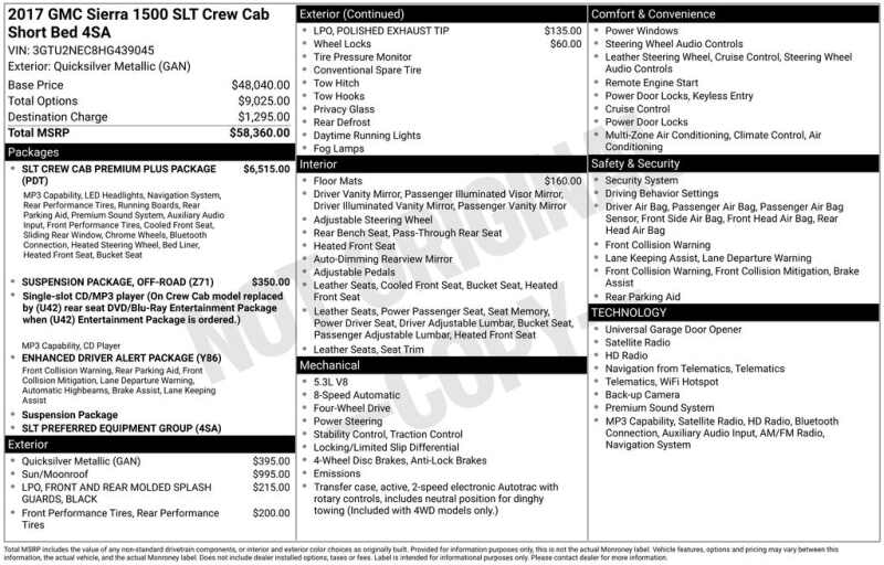 Description: Priced below KBB Fair Purchase Price!LOCAL TRADE!, Pre-Auction AS-IS, Purchaser responsible for all current & future repairs, NO WARRANTY expressed or implied, Wholesale to the Public, Sierra 1500 SLE1, 4D Crew Cab, Vortec 5.3L V8 SFI Active Fuel Management, 4WD, 3.73 Rear Axle Ratio, Heavy-Duty Auxiliary External Transmission Oil Cooler, Heavy-Dut...Features:- - Heavy-Duty Handling/Trailering Suspension Package
