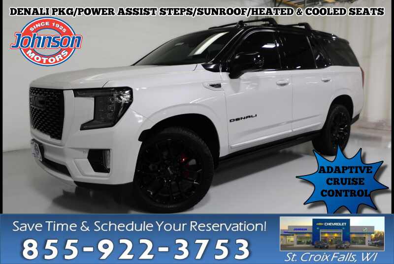 Description: Used 2022 GMC Yukon DenaliAt Johnson Motors of St. Croix Falls -- proudly serving since 1925 and celebrating 100 years in business -- we're thrilled to present this luxurious, powerful, and feature-packed 2022 GMC Yukon Denali. It delivers full-size comfort, impressive performance, and upscale amenities for those who demand more from their SUV.Key ...Features:- - ADAPTIVE CRUISE CONTROL