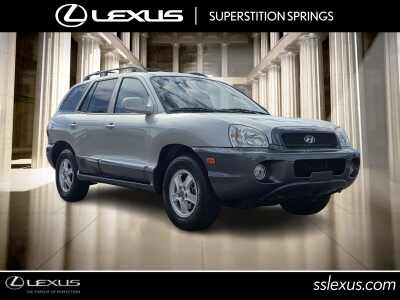 Description: Clean Carfax, Santa Fe GLS 2.7L V6, 2.7L V6 MPI DOHC 24V Federal 173hp, AWD, Pewter/Cool Gray Cladding. Clean CARFAX. Odometer is 55806 miles below market average! 2003 Pewter/Cool Gray Cladding Hyundai Santa Fe GLS 4D Sport Utility Superstition Springs Lexus great selection of new, used vehicles and financing options. Proudly serving the following...0- Sale Price: $9,594
