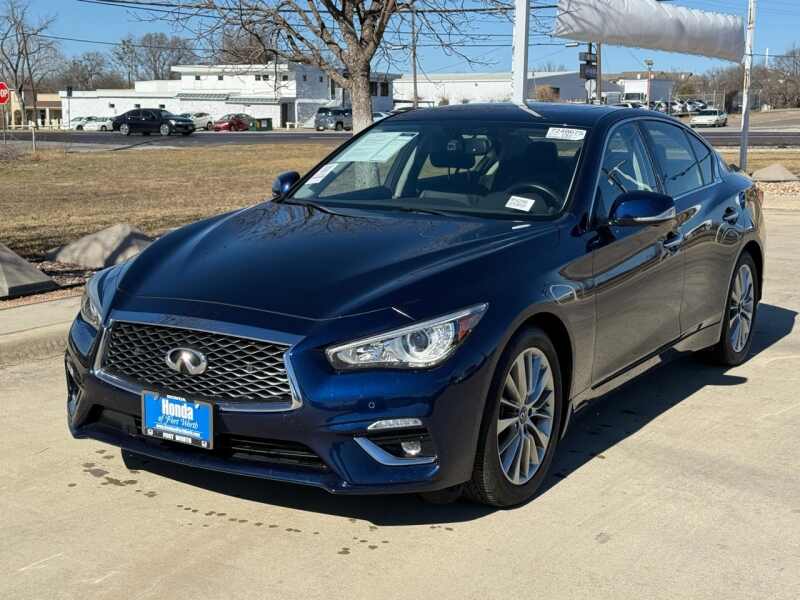 Description: ** ALLOY WHEELS **, * LEATHER INTERIOR *, * BACK UP CAMERA *, * BLUETOOTH *, *LOW MILES*, *Blind Spot Monitoring System*, *Apple Car Play*, *Android Auto*. Clean CARFAX. CARFAX One-Owner. 2022 INFINITI Q50 LUXE 19/27 City/Highway MPG 19/27 City/Highway MPG The Best Cars on Earth are at Honda of Fort Worth. Call today to schedule a test drive.Features:- - Cargo Package