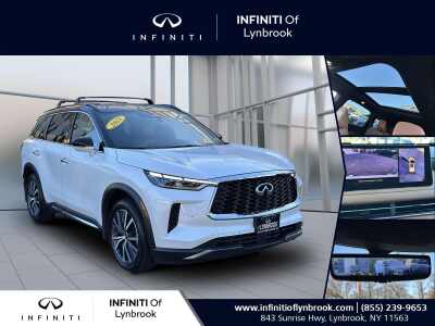 Description: Majestic White 2025 INFINITI QX60 LUXE AWD 9-Speed Automatic 2.0L I4 Turbocharged DOHC 16V LEV3-ULEV50 268hpRecent Arrival! Odometer is 6384 miles below market average! 22/27 City/Highway MPGFeatures:- - 3rd Row Seat