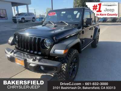 Description: Welcome to Bakersfield Chrysler Jeep!Black Clearcoat 2022 Jeep Wrangler Unlimited Willys 8-Speed Automatic 3.6L V6 24V VVT Clean Carfax, One Owner Carfax, Wrangler Unlimited Willys, 4D Sport Utility, 3.6L V6 24V VVT, 8-Speed Automatic, 4WD, Black Clearcoat, Black Cloth, 4-Wheel Drive Swing Gate Decal, 97 MPH Vehicle Max Speed Calibration, AM/FM rad...Features:- - LED Headlamp & Fog Lamp Group