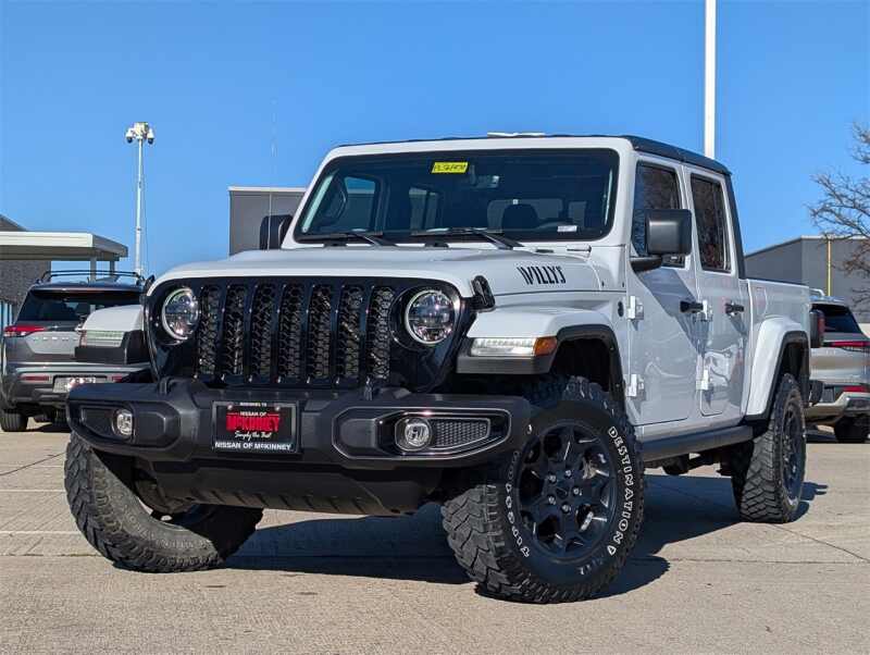 Description: CARFAX One-Owner. Clean CARFAX. Bright White Clearcoat 2023 Jeep Gladiator Willys w/8.4'Radio PremAudGrp Odometer is 5454 miles below market average! ++Apple CarPlay and/or Android Auto++, **NAVIGATION / NAVI / GPS**, Back-Up Camera, HomeLink, Bluetooth for Phone, Tow Hitch / Pkg, Alloy / Aluminum Wheels, **4WD**, 1-Year SiriusXM Guardian Trial, 11...Features:- - GPS Navigation