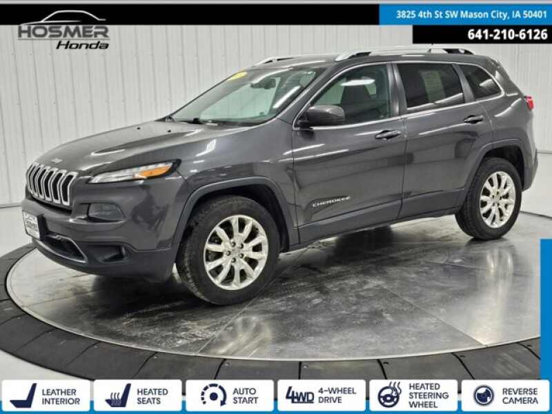 Description: Granite Crystal Metallic Clearcoat 2015 Jeep Cherokee 4D Sport Utility Limited 3.2L V6 9-Speed 948TE Automatic 4WD**At Hosmer we want you to know that all our vehicles are priced at a competitive value position to the market. We use an independent 3rd party software to research internet listings on all vehicles in the market so we can ensure that o...Features:- - NORMAL DUTY SUSPENSION (STD)