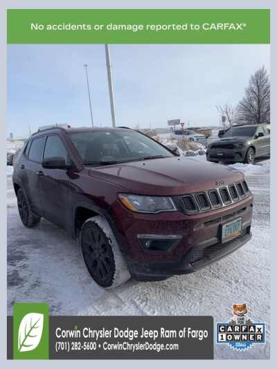 Description: HAPPY NEW YEARS FROM CORWIN CHRYSLER DODGE JEEP RAM OF FARGO!! WE HAVE STOCKINGS FULL OF SAVINGS ON ALL OF OUR PRE-OWNED VEHICLES AVAILABLE!! WE HAVE ONE OF THE LARGEST SELECTION OF INVENTORIES IN OUR AREA AT ONE SINGLE LOCATION!! Recent Arrival! Velvet Red Pearlcoat 2021 Jeep Compass 80th Special Edition 4D Sport Utility 4WD 2.4L I4 CARFAX One-Own...Features:- - Navigation System