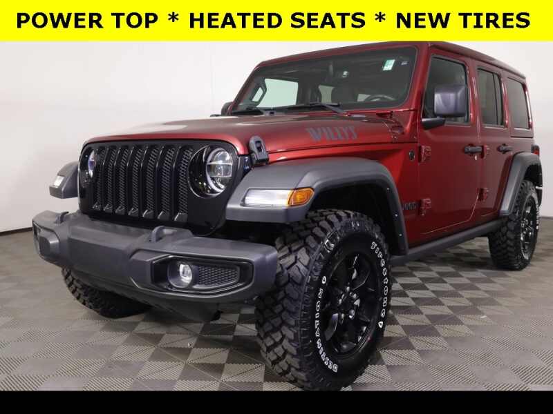 Description: LIBERTY 4 LIFE - OUR EXCLUSIVE LIFETIME POWERTRAIN COMPLIMENTARY SERVICE PROGRAM! 4x4 Local Trade Non-Smoker Heated Seats Bluetooth Hands Free Apple CarPlay Android Auto Heated Steering Wheel Tow Package Push Button StartNew Brakes InstalledThis 2020 Jeep Wrangler Unlimited Willys 4WD is a certified pre-owned vehicle, meaning it has undergone a rig...Features:- - Cold Weather Group