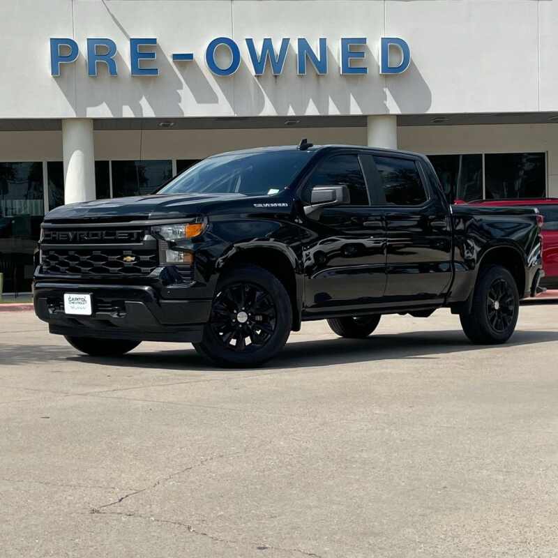Description: Silverado 1500 Custom, 4D Crew Cab, 2.7L I4 Turbocharged DOHC 16V LEV3-SULEV30 310hp, 8-Speed Automatic, RWD, Black, Jet Black Cloth, 10-Way Power Driver Seat w/Lumbar, 120-Volt Bed Mounted Power Outlet, 120-Volt Interior Power Outlet, 3.5 Monochromatic Display Driver Info Center, Bluetooth For Phone, Chevrolet Connected Access Capable, Color-Keyed...0- Sale Price: $30,937