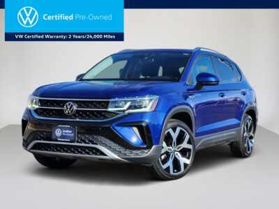 Description: Certified. Dusk Blue Metallic 2023 Volkswagen Taos 1.5T SEL AWD 7-Speed DSG Automatic with Tiptronic 1.5L I4 Turbocharged DOHC 16V LEV3-SULEV30 158hp Clean Carfax, One Owner, Local Trade, AWD, 4WD, Apple Carplay / Android Auto, Bluetooth, Backup Camera, Taos 1.5T SEL, 4D Sport Utility, 1.5L I4 Turbocharged DOHC 16V LEV3-SULEV30 158hp, 7-Speed DSG A...Features:- - Navigation System