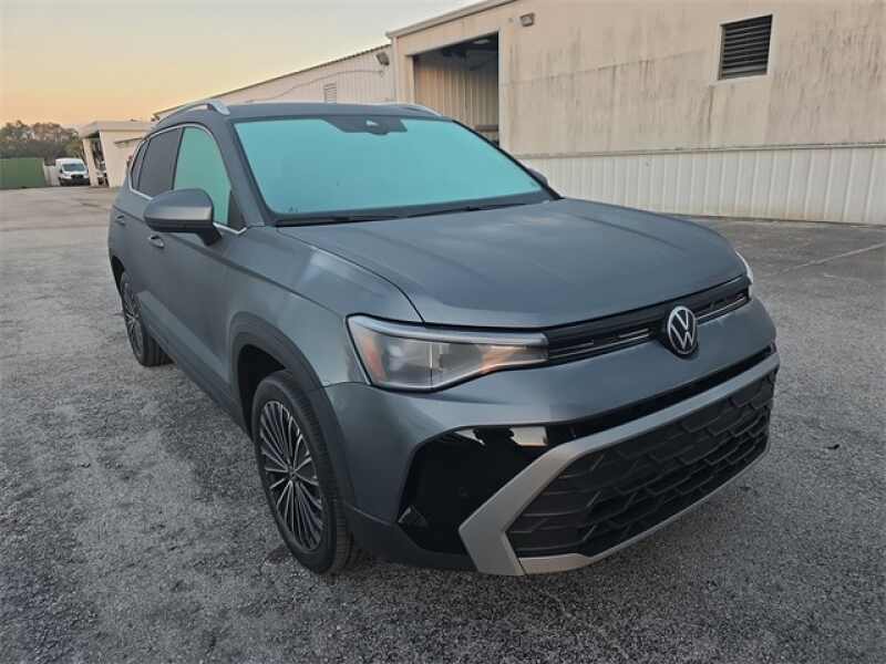 Description: **APPLE CARPLAY WITH NAVIGATION ABILITY**, **BLIND SPOT MONITOR**, **Alloy Wheels**, **ONE OWNER VEHICLE**, **ALL USED VEHICLES SERVICED**, **LEATHER SEATS**, **BACKUP CAMERA**, **BLUETOOTH**. CARFAX One-Owner. Clean CARFAX. Platinum Gray Metallic 2025 Volkswagen Taos 1.5T SE FWD 8-Speed Automatic with Tiptronic 1.5L I4 Turbocharged DOHC 16V LEV3-S...Features:- - 6 Speakers