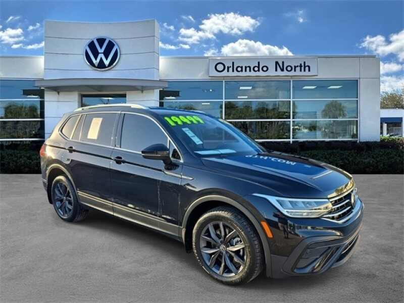 Description: **APPLE CARPLAY WITH NAVIGATION ABILITY**, **BLIND SPOT MONITOR**, **Alloy Wheels**, **ONE OWNER VEHICLE**, **ALL USED VEHICLES SERVICED**, **LEATHER SEATS**, **BACKUP CAMERA**, **BLUETOOTH**. CARFAX One-Owner. Deep Black Pearl 2022 Volkswagen Tiguan 2.0T SE FWD 8-Speed Automatic with Tiptronic 2.0L TSI DOHC Orlando VW North on Lee Road proudly ser...Features:- - 6 Speakers