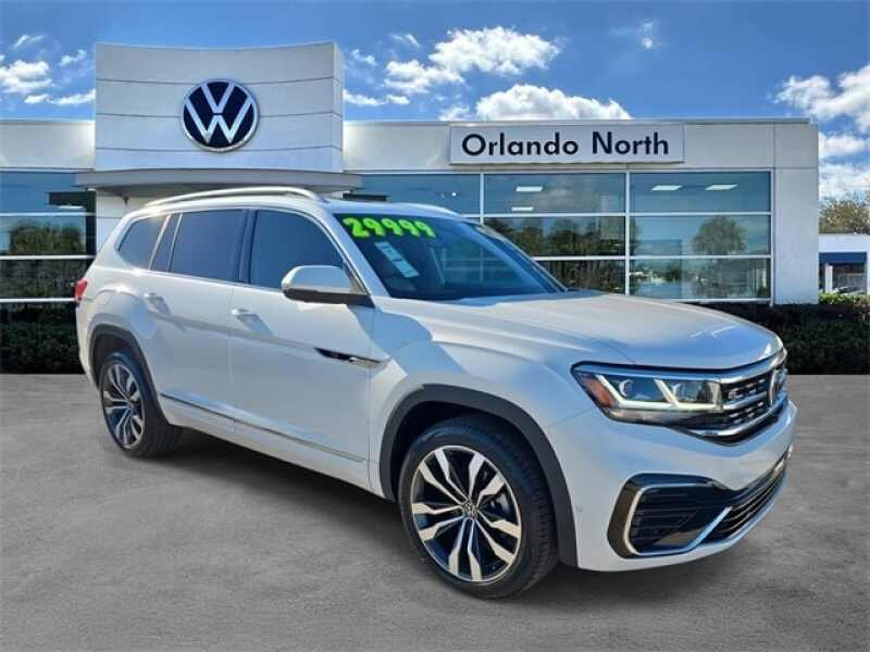 Description: **APPLE CARPLAY WITH NAVIGATION ABILITY**, **BLIND SPOT MONITOR**, **Alloy Wheels**, **ONE OWNER VEHICLE**, **ALL USED VEHICLES SERVICED**, **LEATHER SEATS**, **BACKUP CAMERA**, **BLUETOOTH**. CARFAX One-Owner. Clean CARFAX. White 2025 Volkswagen Atlas 2.0T SE w/Technology FWD 8-Speed Automatic 2.0L TSI Orlando VW North on Lee Road proudly serving ...Features:- - 6 Speakers