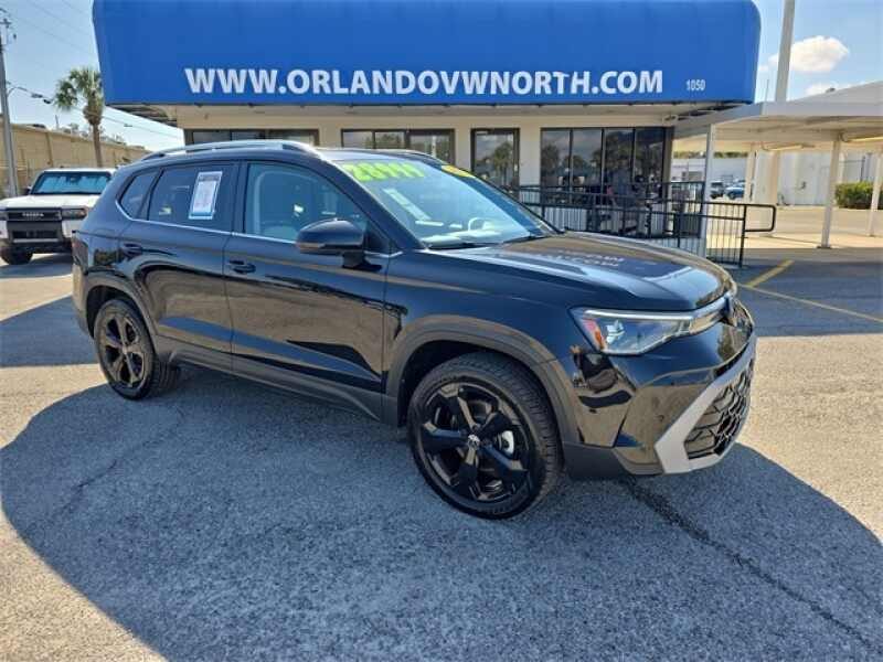 Description: **PANORAMIC SUNROOF**, **APPLE CARPLAY WITH NAVIGATION ABILITY**, **BLIND SPOT MONITOR**, **Alloy Wheels**, **ONE OWNER VEHICLE**, **ALL USED VEHICLES SERVICED**, **LEATHER SEATS**, **BACKUP CAMERA**, **BLUETOOTH**. CARFAX One-Owner. Clean CARFAX. Black 2025 Volkswagen Taos 1.5T SEL AWD 8-Speed Automatic with Tiptronic 1.5L I4 Turbocharged DOHC 16V...Features:- - Navigation system VW Car-Net Guide & Inform