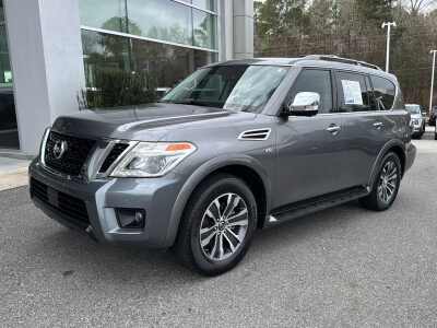 Description: 2019 Nissan Armada Platinum **LOCALLY OWNED**, **PANORAMIC SUNROOF**, **LEATHER SEATS**, **NAVIGATION**, **3RD ROW SEATING**, Armada Platinum, 4D Sport Utility, 5.6L V8 DOHC 32V Endurance, 7-Speed Automatic, RWD, Pearl White Tricoat, Almond Leather. At Gwinnett Place Nissan we pride ourselves on being the best and most convenient location in metro ...Features:- - Navigation System