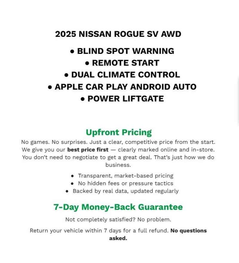 Description: 2023 Nissan Rogue S CARFAX One-Owner. Clean CARFAX. Glacier White AWD 1.5L I3 Turbocharged DOHC 12V LEV3-ULEV50 201hp 28/35 City/Highway MPG Bergstrom Hyundai of Green Bay wants to buy your vehicle - even if you don't buy ours. Get your free and quick offer to purchase. To get our top dollar offer, call our Bergstrom Buying Team Hotline at 920-429-...0- Sale Price: $18,667