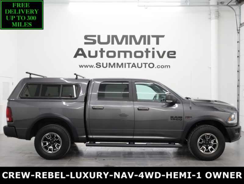 Description: WATCH A 4K WALKAROUND VIDEO OF THIS RAM!1 OWNER! CLEAN TITLE HISTORY! CLEAN CARFAX!* 5.7 Liter OHV V8 Hemi with Multiple Displacement System MDS Engine, 395 Horsepower* Full Four Door Crew Cab* Short Box 5 Foot 7 Inch 5' 7 Shortbox* Rebel Package* 8 Speed Automatic Transmission* 4x4 Push Button Four Wheel Drive 4WD* 4-Corner Air Ride Suspension* Re...Features:- - BLACK LEATHER TRIM BUCKET SEATS W/REBEL LOGO -inc #1 Seat Foam Cushi...