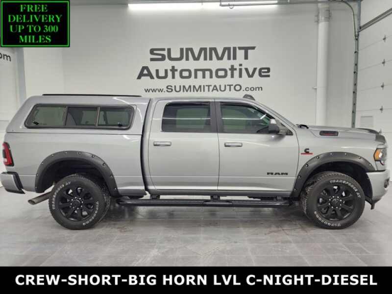 Description: WATCH A 4K WALKAROUND VIDEO OF THIS RAM!CLEAN TITLE HISTORY! CLEAN CARFAX!* 6.7 Liter Cummins Diesel* Full Four Door Crew Cab* Short Box 6 1/2 Foot Shortbox* Night Edition* Big Horn Package* Level C Package* 6 Speed Automatic Transmission with Optional Manual Tap Shift* 4x4 Push Button Four Wheel Drive 4WD* 4X4 Offroad Suspension Package* 2 Inch Le...Features:- - MOPAR SPRAY IN BEDLINER