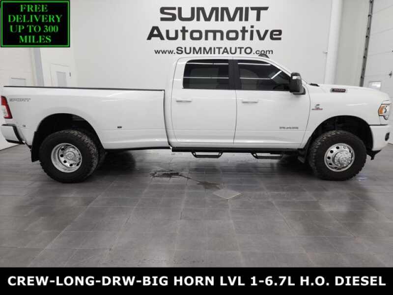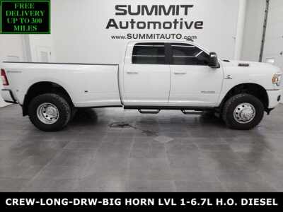 Description: WATCH A 4K WALKAROUND VIDEO OF THIS RAM!1 OWNER! CLEAN TITLE HISTORY! CLEAN CARFAX!* 6.7 Liter I6 Cummins High Output Diesel Engine, 420 Horsepower, 1,075 LB-FT Torque* Full Four Door Crew Cab* Long Box 8 Foot Longbox* Dual Rear Wheel Dually DRW* Big Horn Package* Level 1 Package* 6 Speed AISIN Automatic Heavy Duty Transmission* 4x4 Push Button Fou...Features:- - RADIO UCONNECT 5 W/8.4 DISPLAY