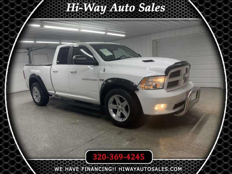 Description: Recent Arrival! LOW MILES! 5.7 HEMI2012 Ram 1500 Bright White Clearcoat Sport 4WD 6-Speed AutomaticMP3, Bluetooth, Clean CarFax, Leather, Remote Start, Cruise Control, Steering Wheel Controls.Please call or visit our store 319 4th Avenue South. Pease, MN 56363.Stop by for a test drive! Available only at Hi-Way Auto Sales, where the customer is #1....Features:- - 5.7L V8 Hemi multi-displacement engine