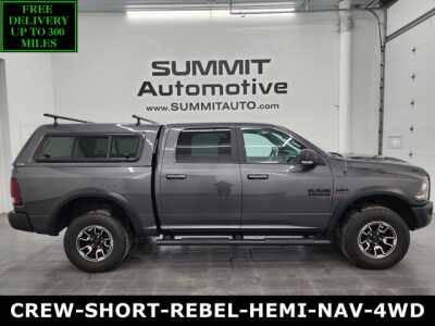Description: 1 OWNER! CLEAN TITLE HISTORY! CLEAN CARFAX!* 5.7 Liter OHV V8 Hemi with Multiple Displacement System MDS Engine, 395 Horsepower* Full Four Door Crew Cab* Short Box 5 Foot 7 Inch 5' 7 Shortbox* Rebel Package* 8 Speed Automatic Transmission* 4x4 Push Button Four Wheel Drive 4WD* 4-Corner Air Ride Suspension* Reverse Backup Camera Rearview Camera* Dua...Features:- - BLACK LEATHER TRIM BUCKET SEATS W/REBEL LOGO -inc #1 Seat Foam Cushi...