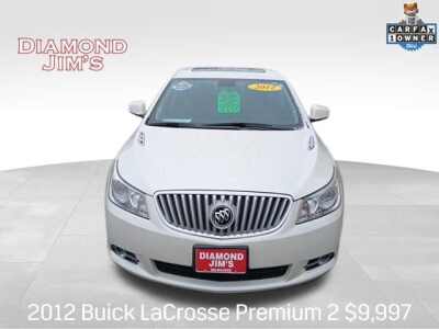 Description: Clean CARFAX. CARFAX One-Owner. 4D Sedan 3.6L V6 E85 Flex Fuel SIDI DOHC VVT 6-Speed Automatic FWD Premium II Group17/27 City/Highway MPG Odometer is 24077 miles below market average!2012 Buick LaCrosse Premium II Group Awards * JD Power Dependability Study * 2012 IIHS Top Safety PickDIAMOND JIM'S has been serving Chicago, IL and Madison, WI and...Features:- - DRIVER CONFIDENCE PACKAGE includes (UFT) Side Blind Zone Alert (TT2)...