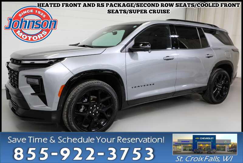 Description: 2024 Chevrolet Traverse RS -- Bold Design. Intelligent Performance. Confident Comfort.Available at Johnson Motors of St. Croix FallsMeet the all-new 2024 Chevrolet Traverse RS, a midsize SUV that blends head-turning style with cutting-edge technology and everyday versatility. Finished in Sterling Gray Metallic with a striking Jet Black interior acc...Features:- - AUDIO SYSTEM 17.7 DIAGONAL ADVANCED COLOR HIGH-CONTRAST LCD DISPLAY ...