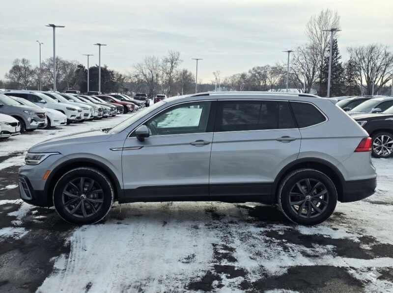 Description: Tiguan 2.0T SE 2.0L TSI DOHC Pyrite Silver Metallic ****The 2022 Volkswagen Tiguan 2.0T SE blends crisp, German-tuned agility with everyday versatilityits 184-hp turbo four and smooth 8-speed deliver eager punch, while available 4MOTION all-wheel drive adds confident year-round grip. Freshened styling, LED lighting, and 18-inch alloys set the tone ...Features:- - Panoramic Sunroof Package