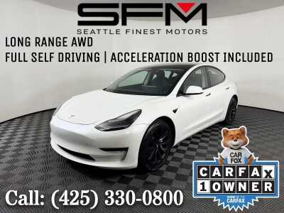 Description: Introducing a pristine Carfax 1-Owner 2021 Tesla Model 3 Long Range AWD, an epitome of modern electric vehicle excellence. Adorned in the sophisticated Pearl White Multi-Coat exterior, this Tesla shines with an understated yet commanding presence. Its sleek, aerodynamic design complements the exceptional performance that lies beneath. The minimalis...Features:- - Full Self-Driving Capability