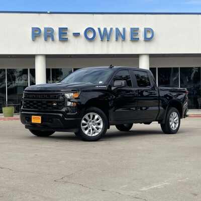 Description: Silverado 1500 Custom, 4D Crew Cab, 2.7L I4 Turbocharged DOHC 16V LEV3-SULEV30 310hp, 8-Speed Automatic, RWD, Black, Black Cloth, 10-Way Power Driver Seat w/Lumbar, 120-Volt Bed Mounted Power Outlet, 120-Volt Interior Power Outlet, 3.5 Monochromatic Display Driver Info Center, Bluetooth For Phone, Color-Keyed Carpeting Floor Covering, Custom Conven...0- Sale Price: $41,014