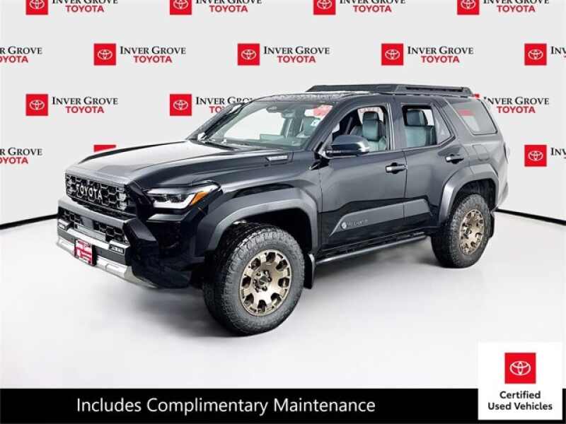 Description: Certified. Black 2025 Toyota 4Runner i-FORCE MAX Hybrid Trailhunter 4WD 8-Speed Automatic 2.4L I4 FI Hybrid Turbocharged DOHC 16V ABS brakes, Active Cruise Control, Alloy wheels, Compass, Electronic Stability Control, Front dual zone A/C, Heated & Ventilated Front Bucket Seats, Heated door mirrors, Illuminated entry, Low tire pressure warning, Navi...Features:- - Turbocharged