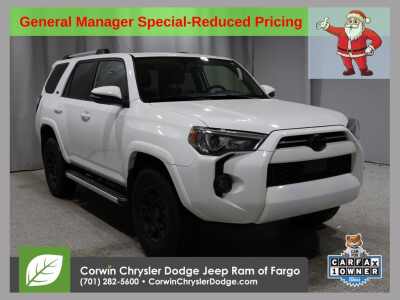Description: WELCOME TO DECEMBER AT CORWIN CHRYSLER DODGE JEEP RAM OF FARGO!! WE HAVE GREAT SAVINGS ON ALL OF OUR PRE-OWNED VEHICLES AVAILABLE!! WE HAVE ONE OF THE LARGEST SELECTION OF INVENTORIES IN OUR AREA AT ONE SINGLE LOCATION!! Priced below KBB Fair Purchase Price! White 2021 Toyota 4Runner SR5 Premium 4D Sport Utility 4WD 4.0L V6 SMPI DOHC CARFAX One-Own...Features:- - Moonroof Package