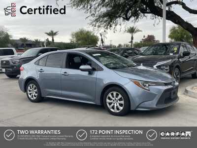 Description: This is a Certified Pre-Owned Vehicle by MPP.Apple Car Play, Bluetooth, Back Up Camera, Adaptive Cruise Control, Lane Departure Alert, One Owner, Corolla LE, 4D Sedan, 2.0L I4 DOHC 16V, Celestite. Certified. Certification Program Details MPP CPO FWD Clean CARFAX. Priced below KBB Fair Purchase Price! 32/41 City/Highway MPG CVT 2.0L I4 DOHC 16V Cele...Features:- - 6 Speakers