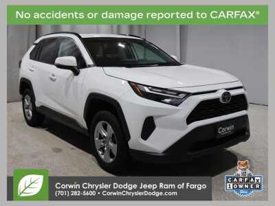 Description: EMBRACE THE SHORTEST MONTH OF THE YEAR WITH CORWIN CHRYSLER DODGE JEEP RAM OF FARGO! WE HAVE SAVINGS ON ALL OF OUR PRE-OWNED VEHICLES AVAILABLE!! WE HAVE ONE OF THE LARGEST SELECTIONS OF INVENTORIES IN OUR AREA AT ONE SINGLE LOCATION!! Recent Arrival! White 2023 Toyota RAV4 XLE 4D Sport Utility AWD 2.5L 4-Cylinder DOHC Dual VVT-i CARFAX One-Owner. ...Features:- - Convenience Package