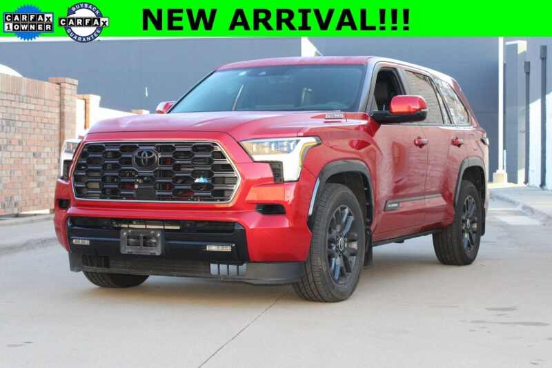 Description: CARFAX One-Owner. Clean CARFAX. Supersonic Red 2024 Toyota Sequoia Platinum ++Apple CarPlay and/or Android Auto++, **NAVIGATION / NAVI / GPS**, **LEATHER**, Back-Up Camera, Front Parking Sensors, Rear Parking Sensors, HomeLink, Bluetooth for Phone, Power Liftgate, Power Seat, 2nd Row Bucket Seats, 3rd Row Seating, Heated Cooled Front Seats, Heated ...Features:- - Navigation system Drive Connect (1 year trial) includes Cloud Navigati...