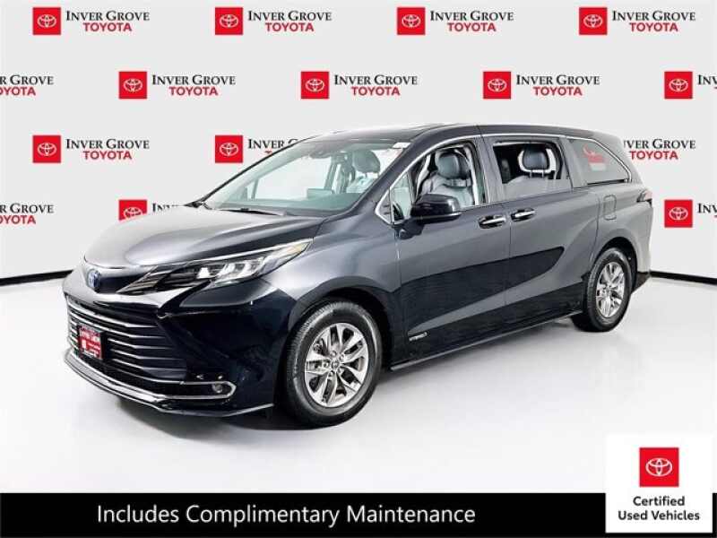 Description: Certified. Midnight Black Metallic 2021 Toyota Sienna XLE 7 Passenger AWD CVT 2.5L I4Recent Arrival! 35/36 City/Highway MPGToyota Gold Certified Details * Transferable Warranty * Roadside Assistance for 7 Year / 100,000 Mile. Standard New-Car Financing Rates Available. Warranty honored at over 1,400 Toyota dealers in the continental U.S. & Canada...Features:- - All Wheel Drive